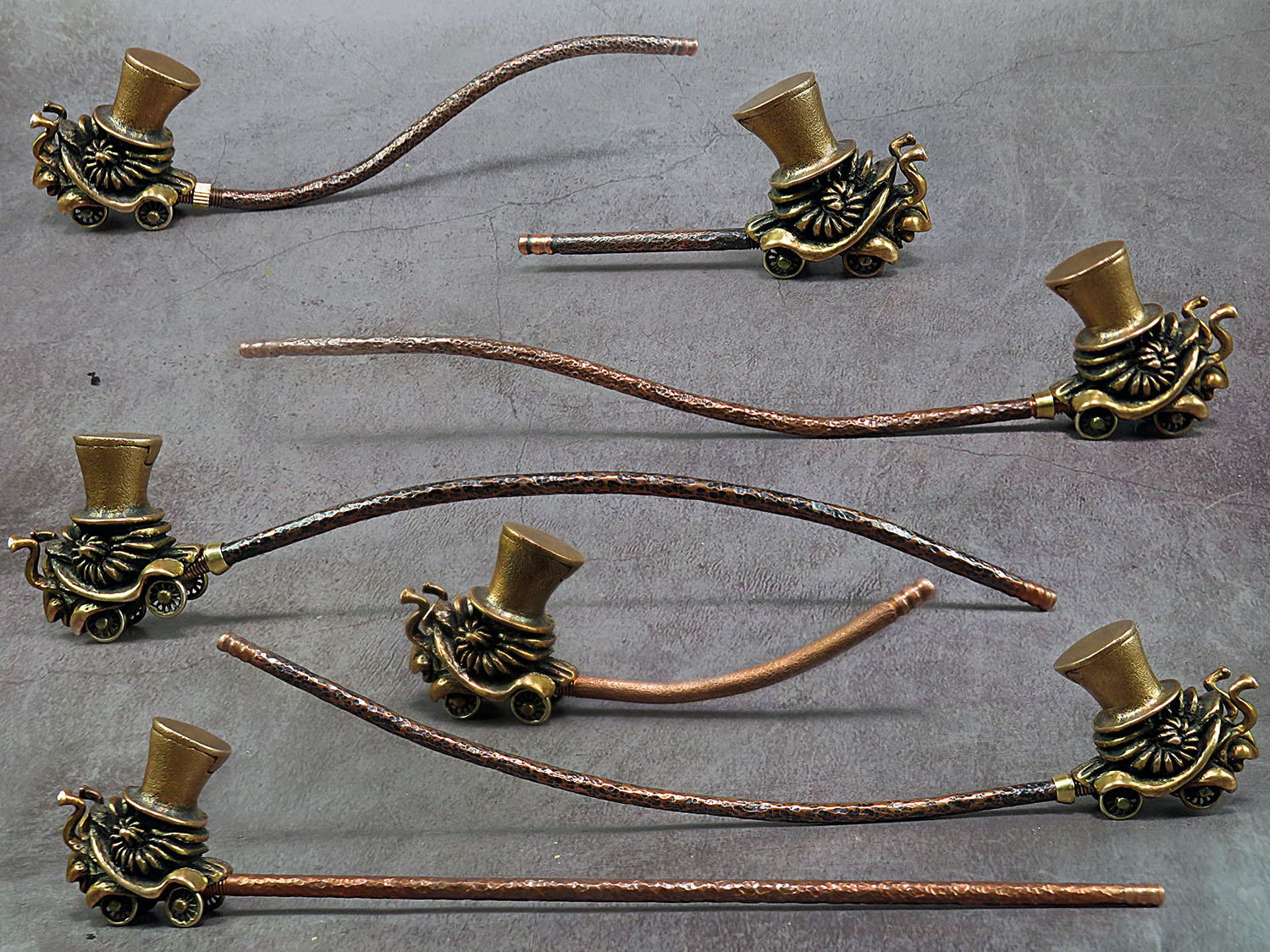 The mouthpiece is made of copper, it is screwed on, can have a length (from 3 to 30 cm) and a shape at the request of the buyer. The pipe is working, not decorative, the model is tested by the master.