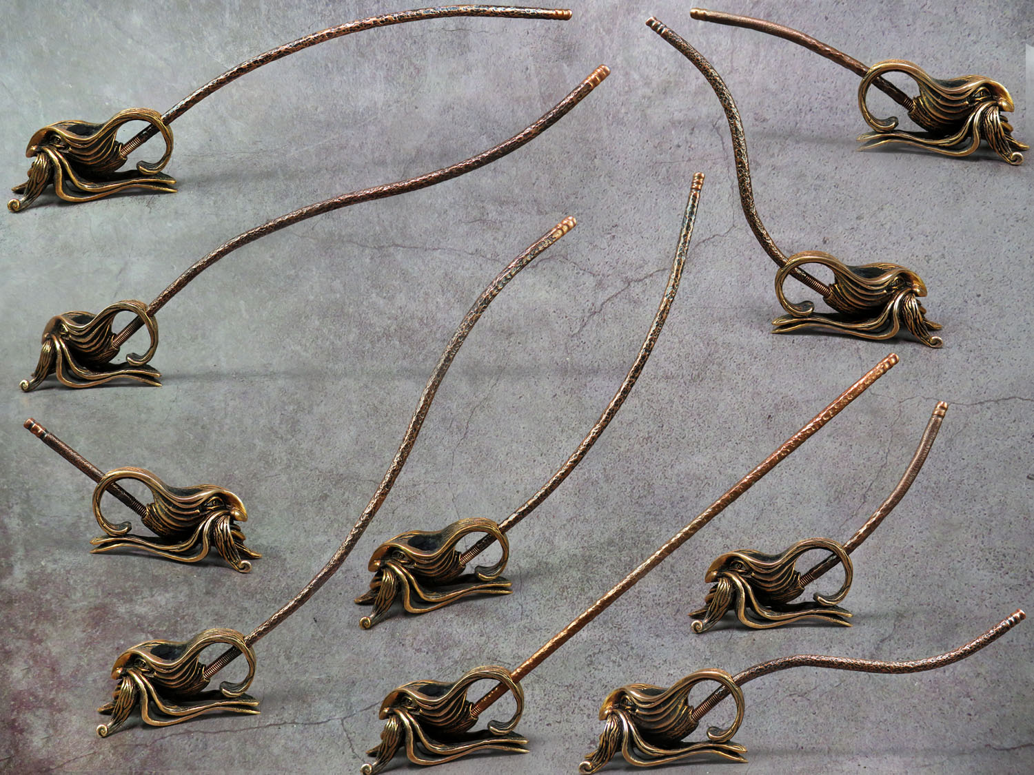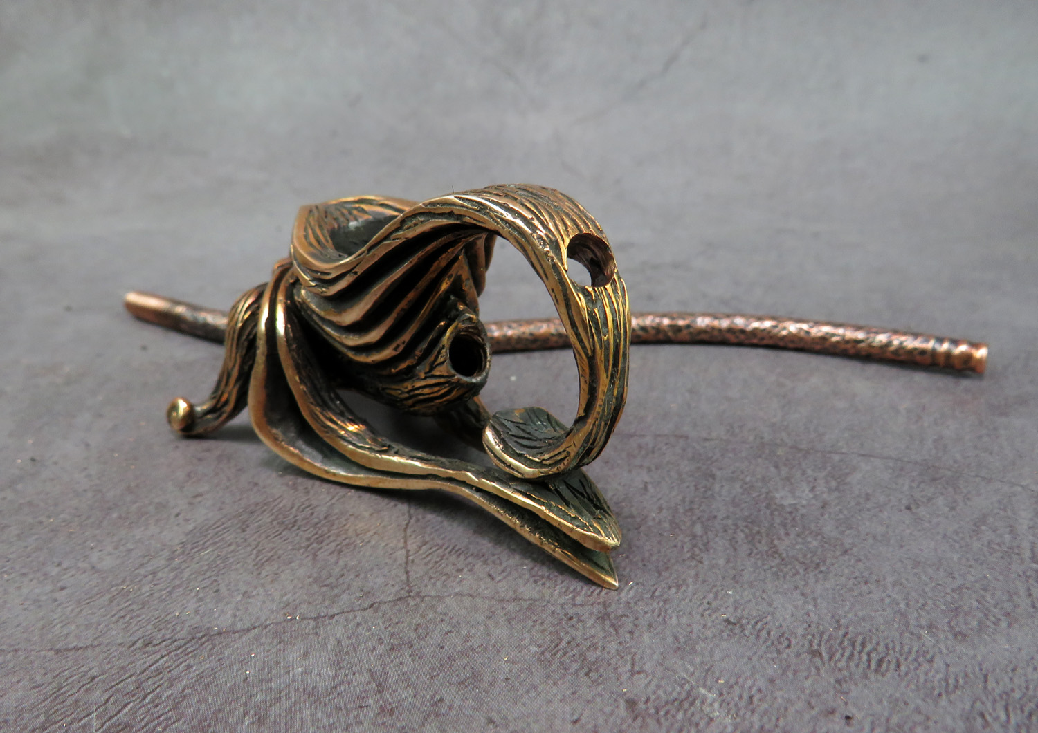 The pipe is made by hand (without using computer technology) from bronze according to the author's sketch.