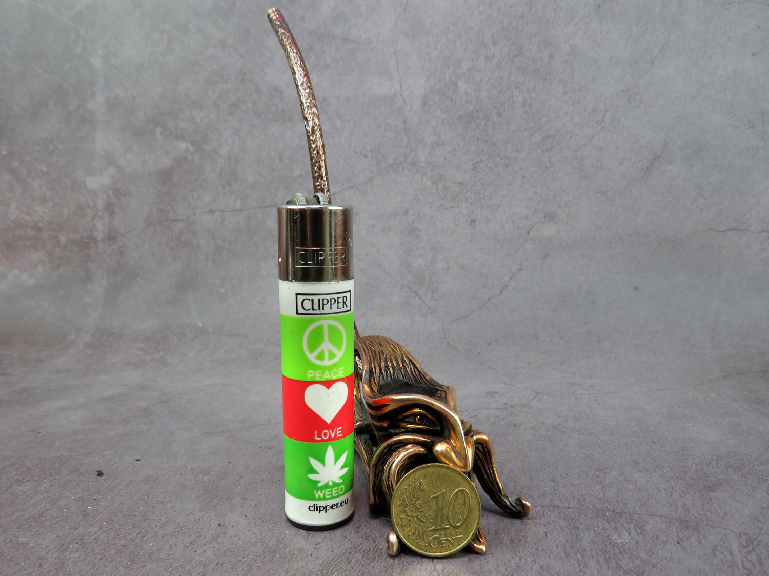 The mouthpiece is made of copper, it is screwed on, can have a length (from 3 to 30 cm) and a shape at the request of the buyer. The pipe is working, not decorative, the model is tested by the master.