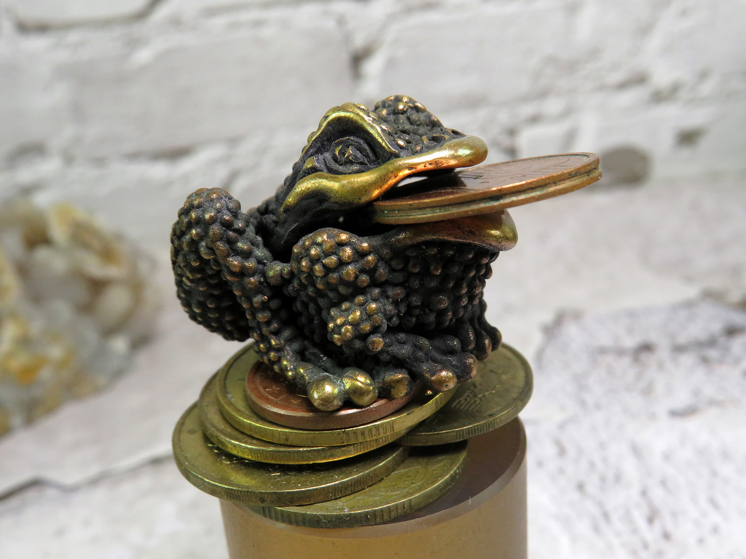 Miniature bronze casket in the shape of a frog. Or a frog in the form of a casket. If you put a coin in her mouth, you get an excellent Feng Shui money frog - a symbol of wealth and prosperity.