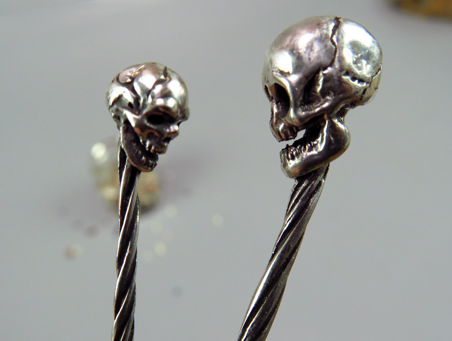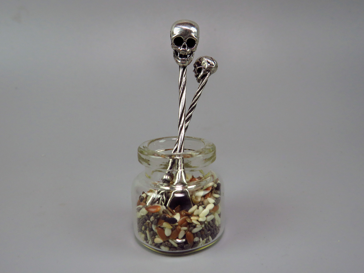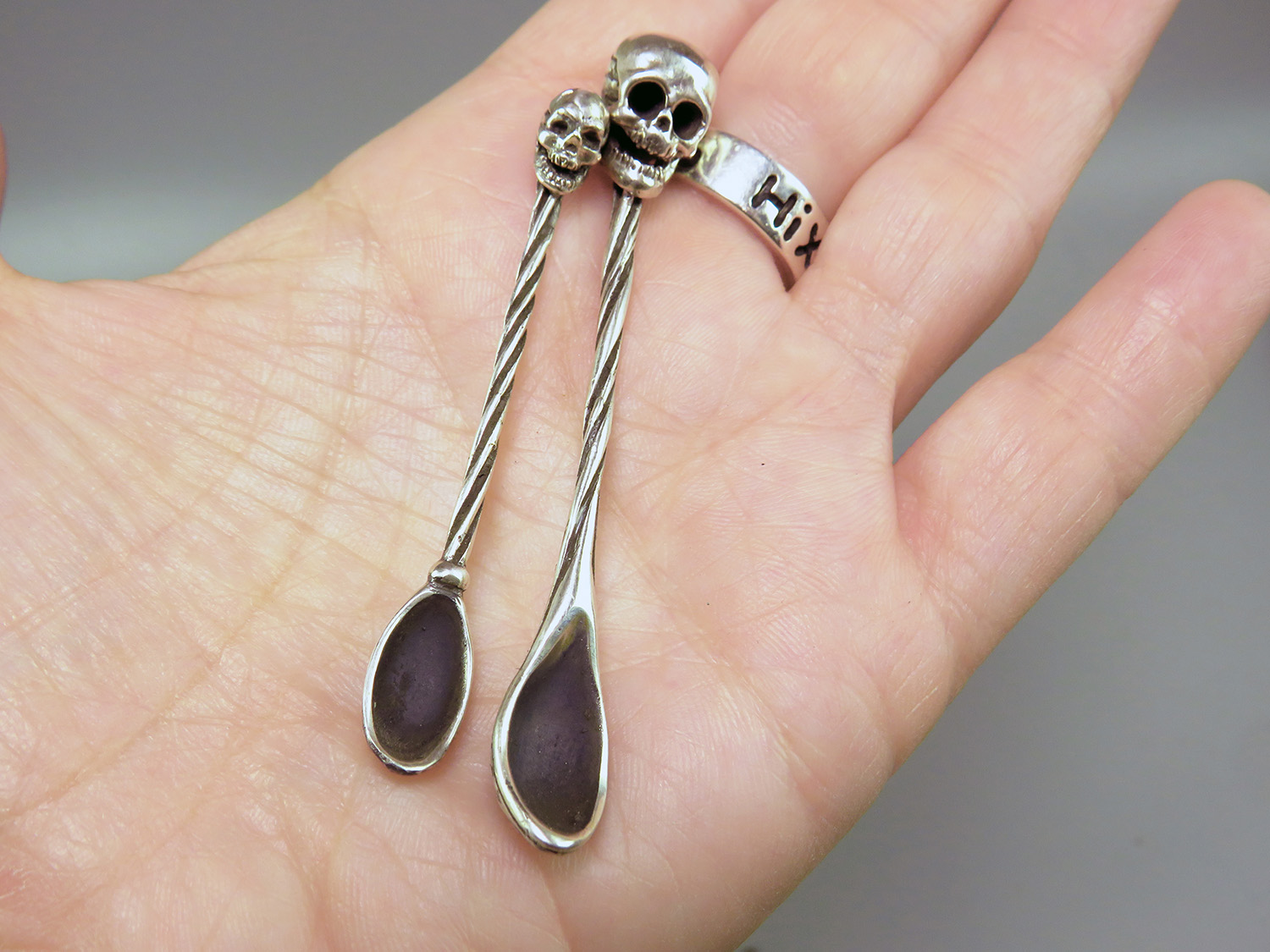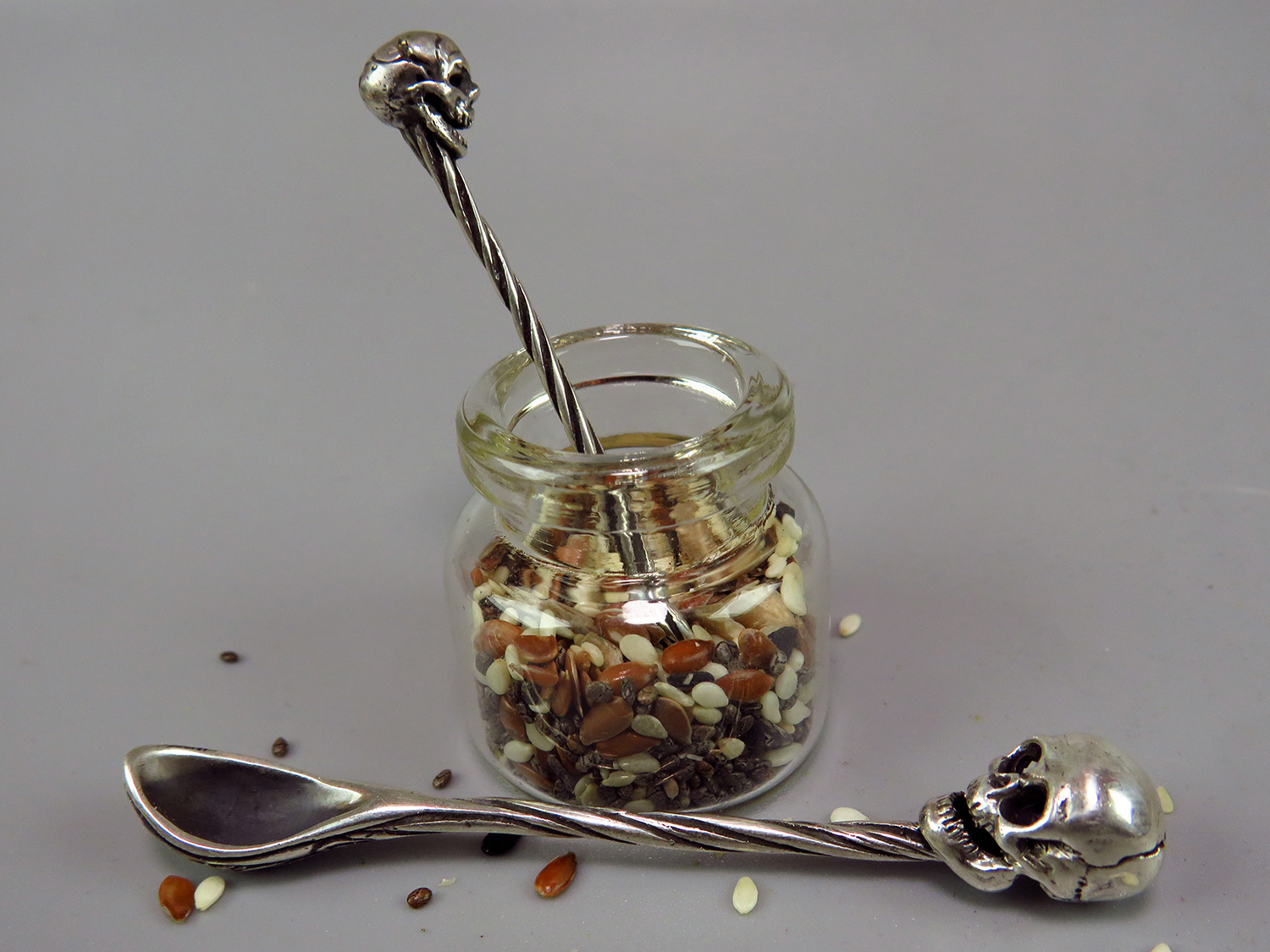 Miniature silver spoon with a skull on the handle. It will be an excellent gift for goths, role-players and all lovers of necro-aesthetics.
