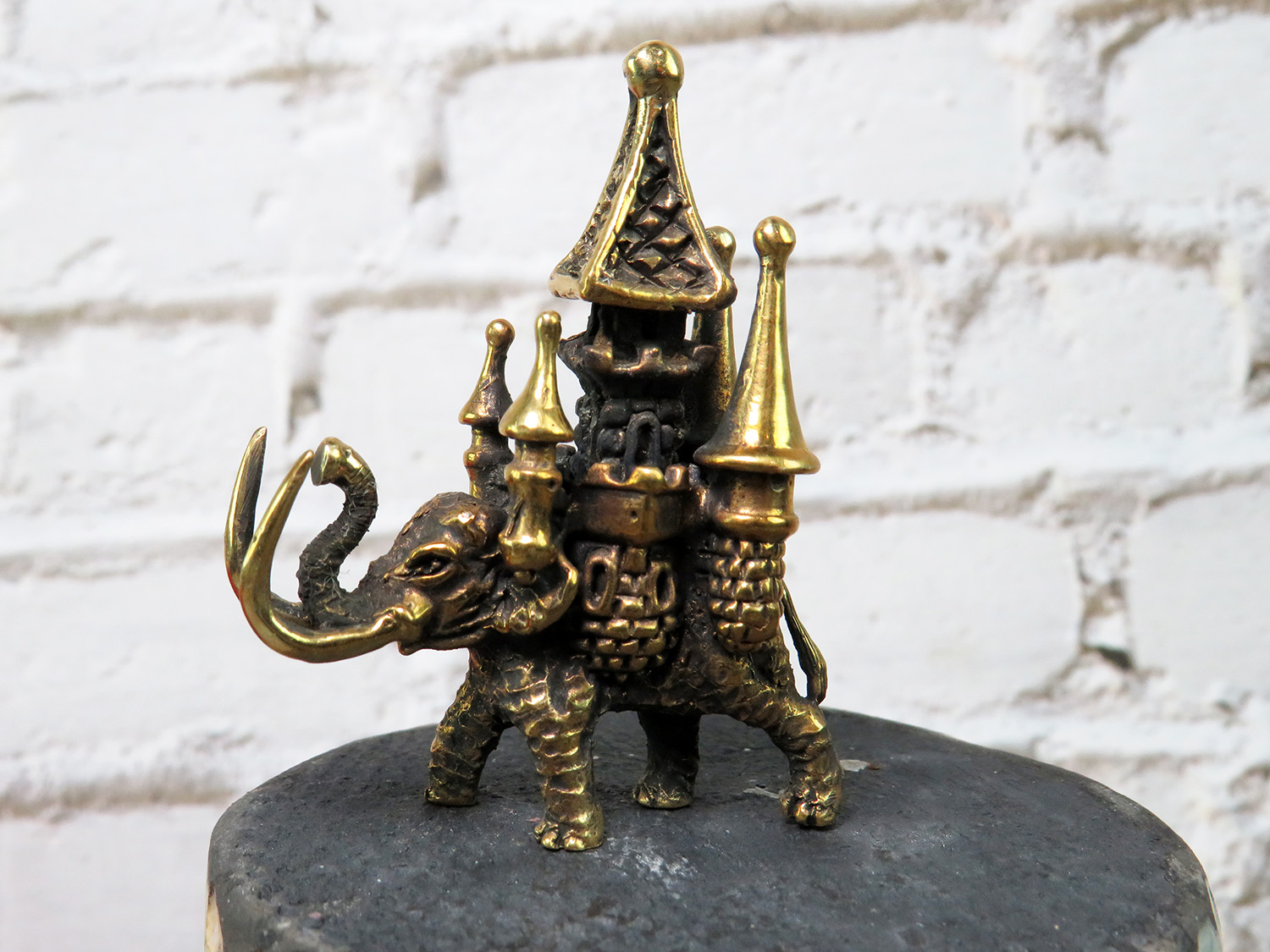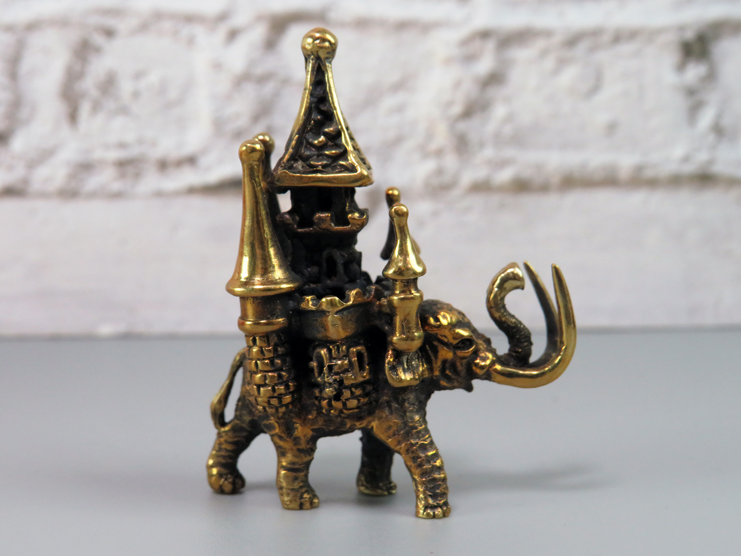 A miniature bronze elephant with a castle on its back. This amazing animal symbolizes the famous words of Cicero "All that is mine I carry with me".
