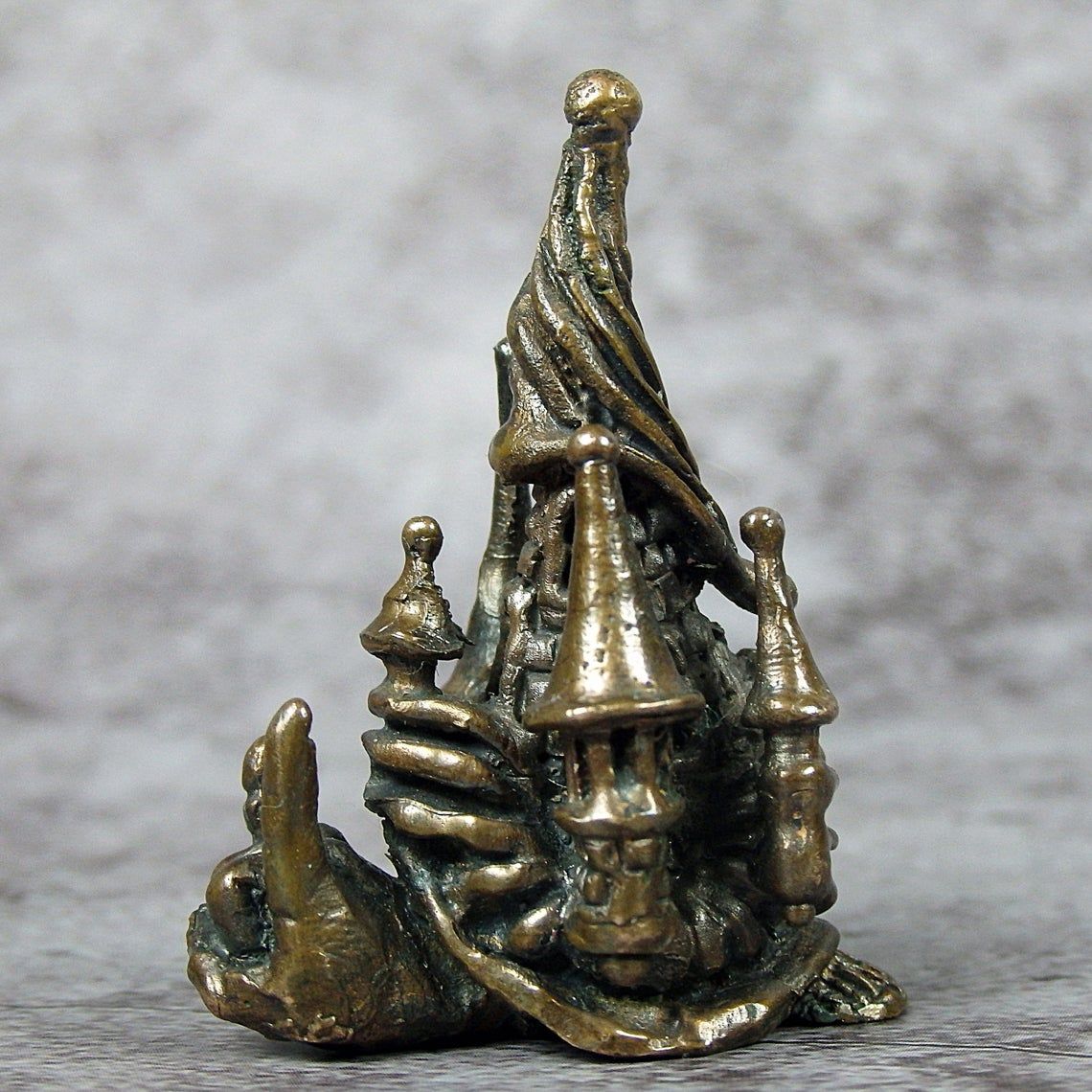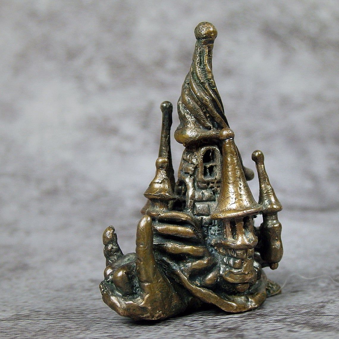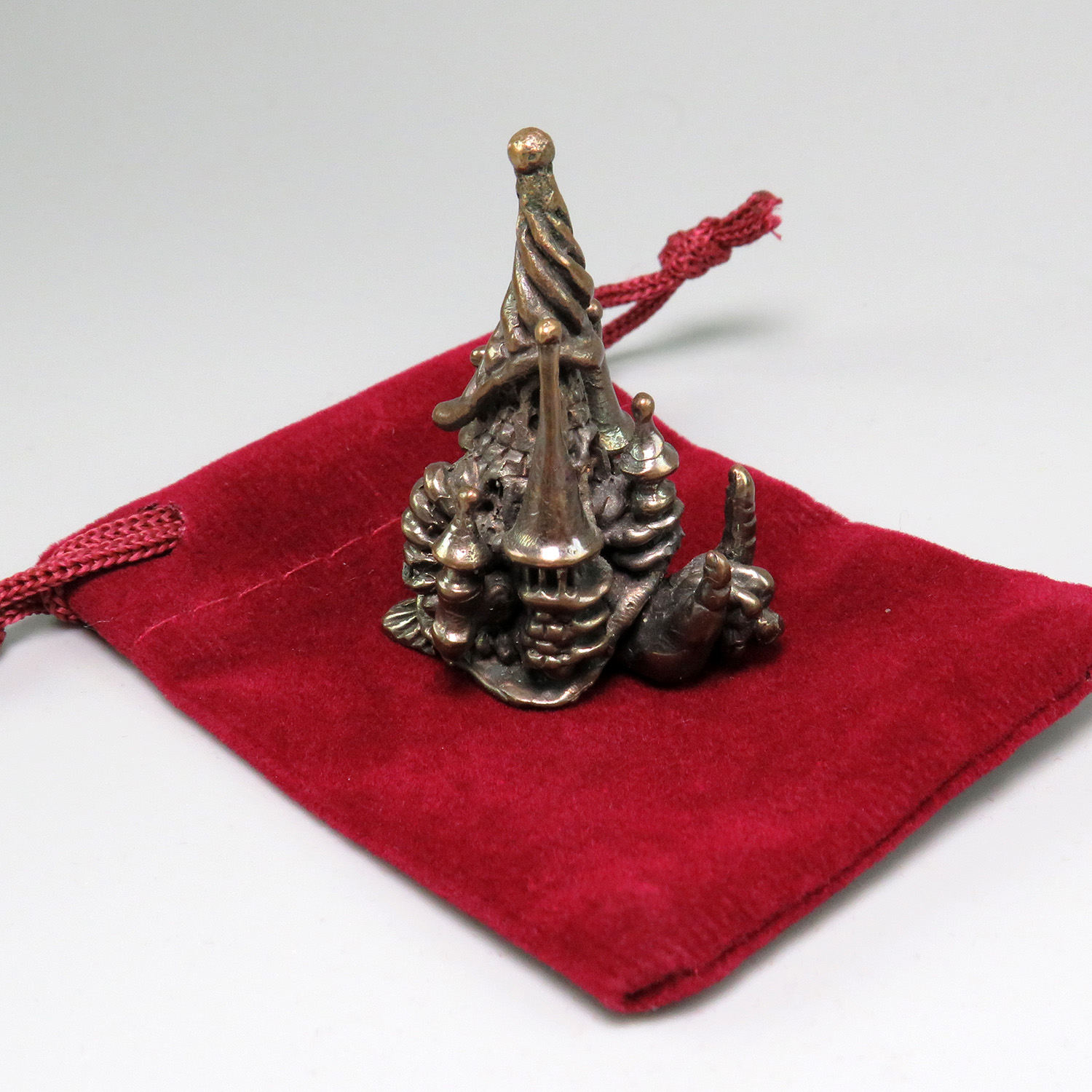 A miniature figurine of bronze. The first snail from the rock-family with horns in the form of a rock-gesture "Goat" and and with a personal castle on the back.