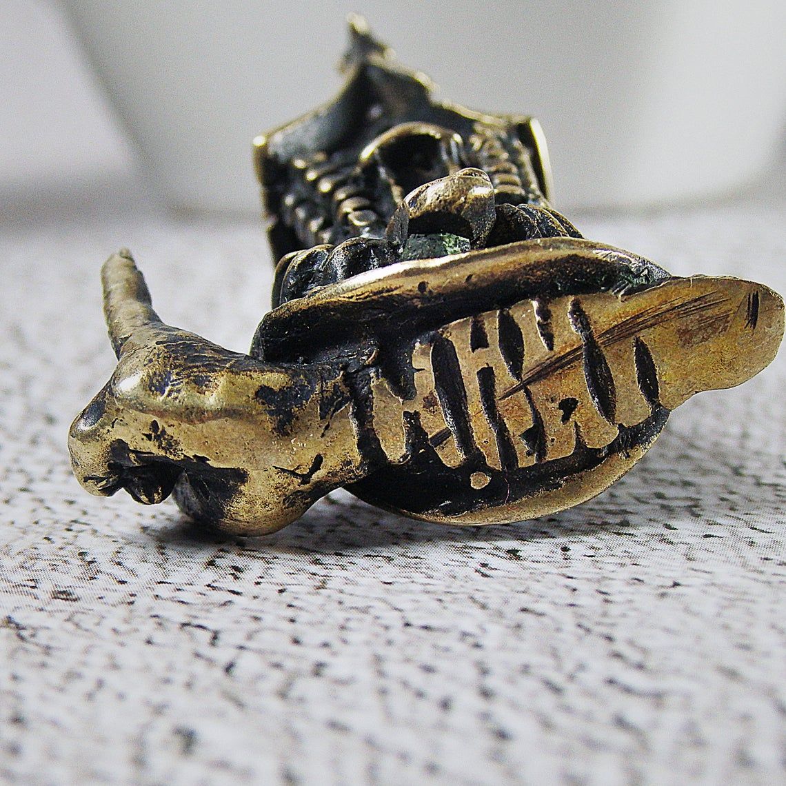 A miniature figurine of bronze. And again the snail from the rock-family with horns in the form of a rock-gesture "Goat" and with a personal cozy hut on the back.