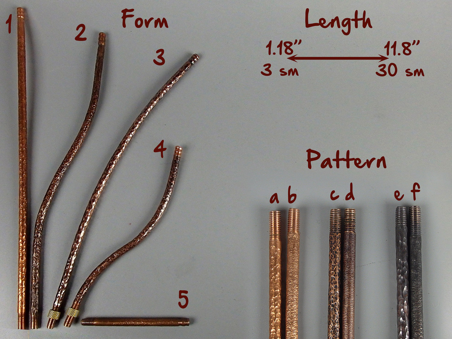 The mouthpiece is made of copper, it is screwed on, can have a length (from 3 to 30 cm) and a shape at the request of the buyer. The pipe is working, not decorative, the model is tested by the master.