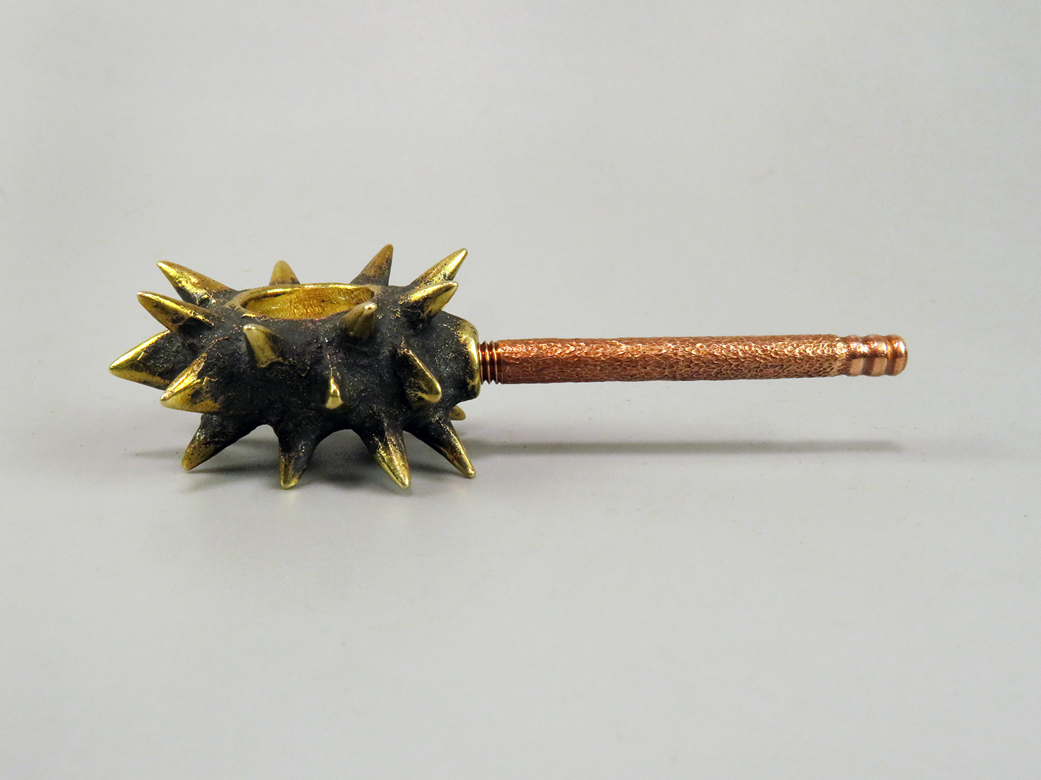 Bronze smoking pipe with a bowl in the shape of a sea creature - sea cucumbers. The mouthpiece is made of copper, it is screwed on, can have a length (from 3 to 30 cm) and a shape at the request of the buyer. The pipe is working, not decorative, the model is tested by the master.