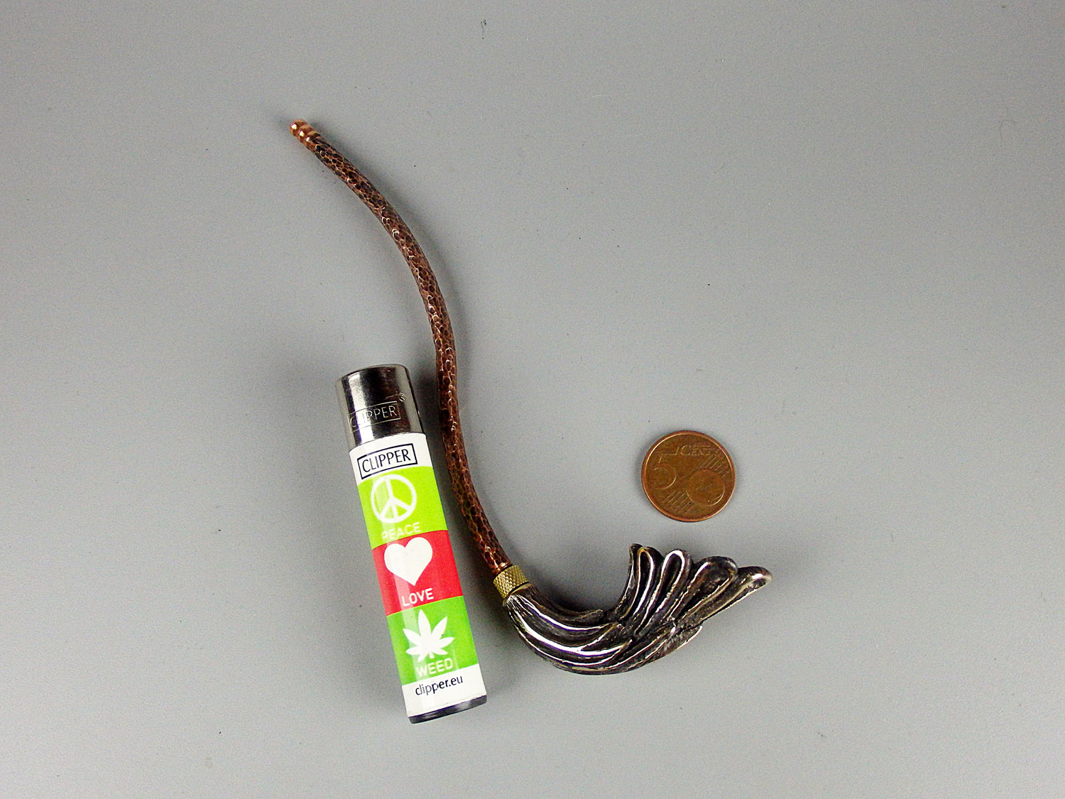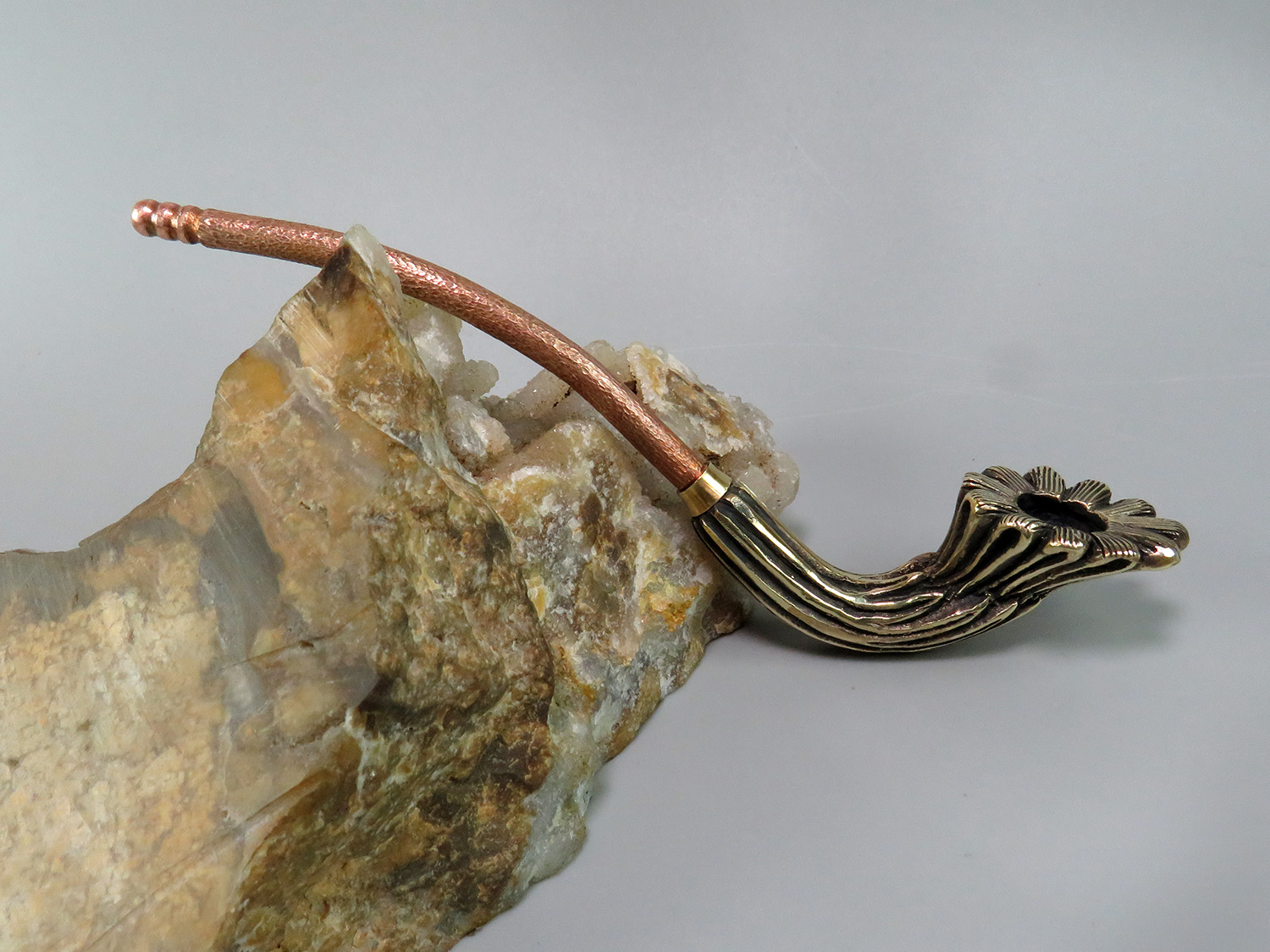 Designer bronze churchwarden pipe with a bowl resembling a exotic flower. The mouthpiece is made of copper, it is screwed on, can have a length (from 5 to 30 cm) and a shape at the request of the buyer. The pipe is working, not decorative, the model is tested by the master.