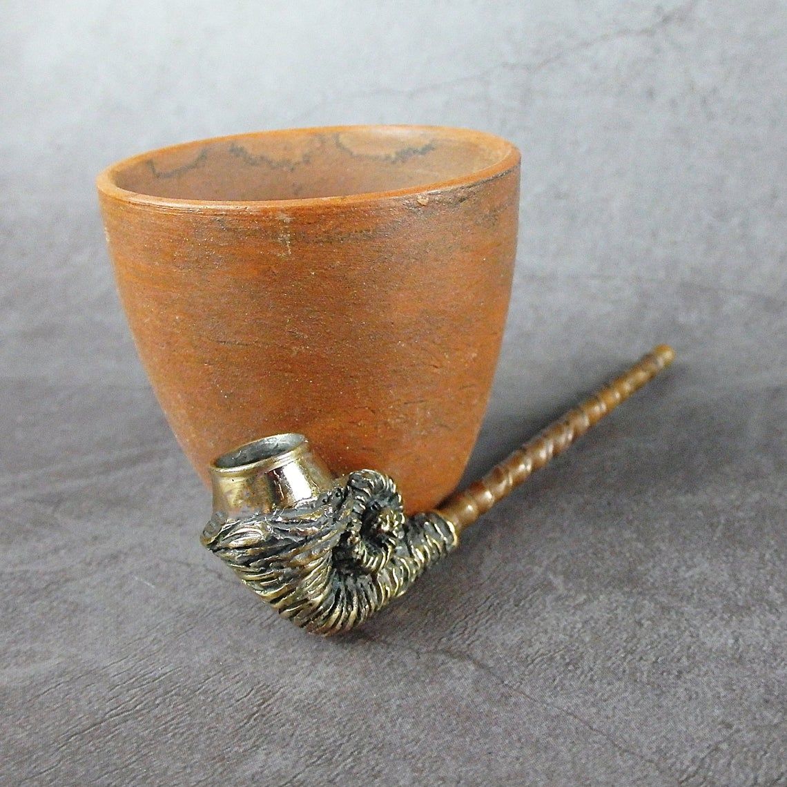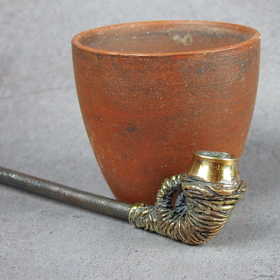 Bronze smoking pipe with a bowl in the shape of a French horn or shells. This pipe will be a great gift for brass musicians.