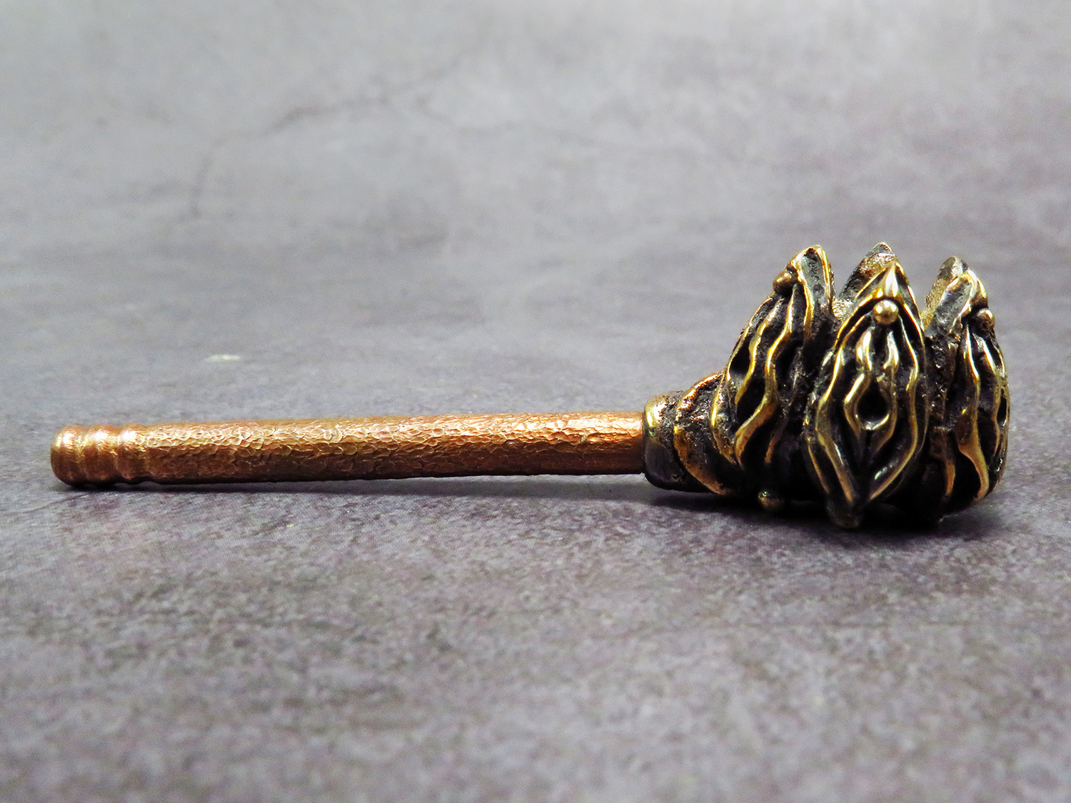 Bronze smoking pipe with a with an unobvious, but very immodest bowl. The Sacred Lotus, which is also a fertility artifact, is a sacred symbol of the feminine principle and will leave no one indifferent, and will become an erotic talisman for its owner.